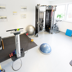 Knapp 200 m² Fläche für konzentriertes, intensives Training in hellen Räumen mit großen Fensterflächen, die Tageslicht und frische Luft aus den umgebenden Wäldern hereinlassen.